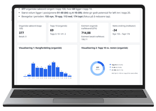 Søkemotoroptimalisering handler i stor grad om prioritering. Jeg jobber med analyse, tekniske forbedringer og innhold som bygger synlighet steg for steg. Tiltakene baseres på faktiske data og brukeradferd, ikke generelle sjekklister. Dette gir bedre langsiktig effekt og mindre behov for kontinuerlige brannslukkingstiltak.